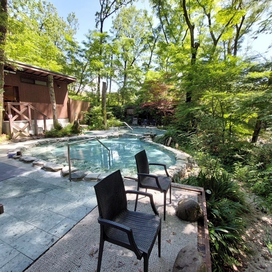 キャンプ場から車で数分の距離には、温泉施設 「おんりーゆー」もあり、一日の疲れを癒すこと もできます。特にオススメはサウナからの森林浴。人里離れた緑豊かな最高の環境で“整える” サウナリピーター続出のスポットです。 なお、丸太の森へお越しのお客様には、料金が大幅に割引される特別割引券をお渡ししています。丸太の森へお越しの際は、ぜひ、おんりーゆ ーにもお立ち寄りください。