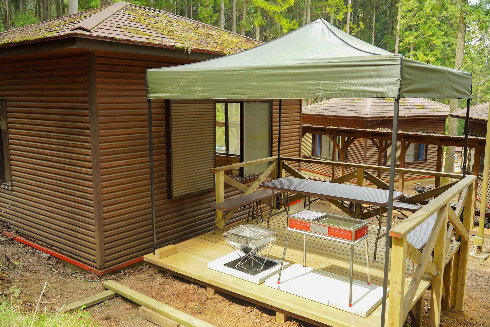箱根外輪山、明神ヶ岳(みょうじんがたけ)の麓にある「足柄森林公園丸太の森」は広大な森の中にあり、東京ドーム5個分の面積を持つ、森林公園です。丸太の森では南足柄市のモンベルフレンドタウン登録などを受け、より多くのお客様にアウトドアを手軽に楽しんでいただけるように、公園内のキャンプ場の大幅リニューアルを行いました。木の温もりを感じられるウッドデッキサイトの新設やバンガローのフローリング改修、炊事場やバーベキューサイトの改良など、多くの設備を一新することで、キャンプ初心者にもやさしいキャンプ場に生まれ変わりました。