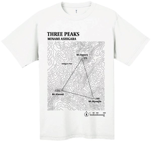 市内にある明神ヶ岳や金時山、矢倉岳は、 比較的低山でありながら、山頂では雄大な富士山をはじめダイナミックな眺望を楽しむことができる山として、日帰りの登山客に人気があります。これら三つの山を、足柄三山( THREE PEAKS MINAMIASHIGARA)と名付け、等高線と足柄三山それぞれの位置、標高を配置したオリジナルデザインです。