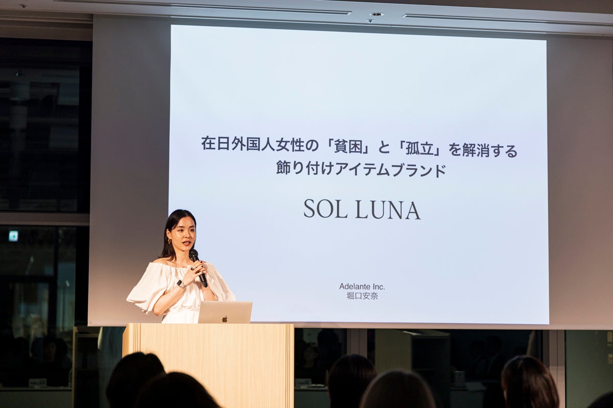 審査員からは、「購入される方も作り手もみんなが幸せの循環の中にいるものづくりをしているところに共感をし、またその先に子どもたちの未来がつながっているところに感動した。」とのコメントをいただき、これまでのSOL LUNAのブランドストーリーや取り組みを評価していただきました。