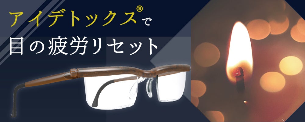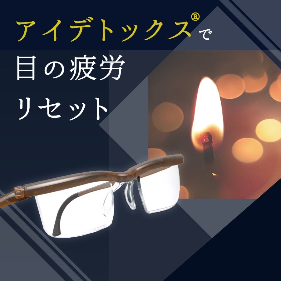 眼の疲れメガネとキャンドルでデトックス!度数調節メガネでデジタル機器生活を乗り越える人を応援!