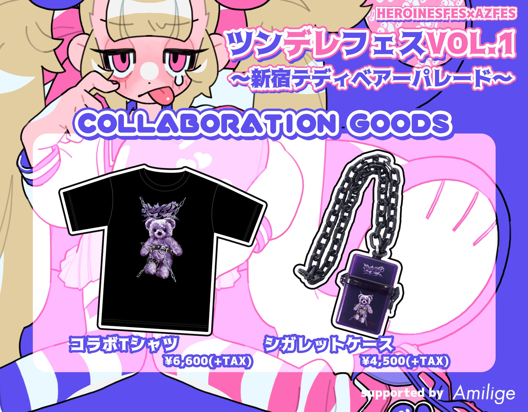 会場 新宿BLAZE Shinjuku FACE (東京)全メンバークマ仮装 Amilige×ツンデレフェス コラボレーションTシャツ シガレットケースホルダー発売 Amiligeを代表する『Tide Bear』シリーズとのコラボレーションデザイン!鎖に縛れらながらも自由を夢見てるクマのグラフィック&ツンデレフェスのロゴ入り限定商品。