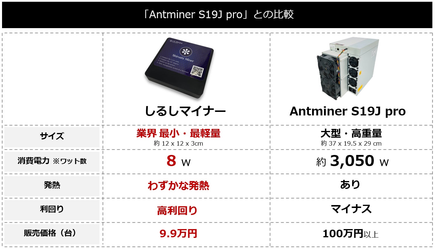 「しるしマイナー」は、一般的なマイニングマシンと比較した際に以下のような特徴があります。
