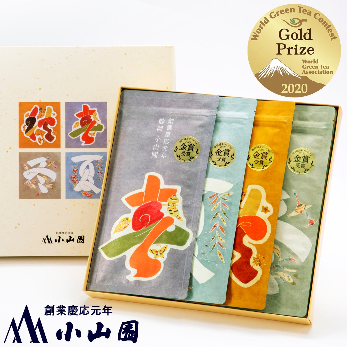 人間国宝・芹沢銈介氏の作品に着想を得て、小山園の茶師・藤田浩介が、仕上げと合組(ブレンド)によってお茶で四季を表現しました。それぞれの季節を感じられることはもちろん、飲み比べていただくことで、変わりゆく季節のはかなさや美しさを感じていただけます。