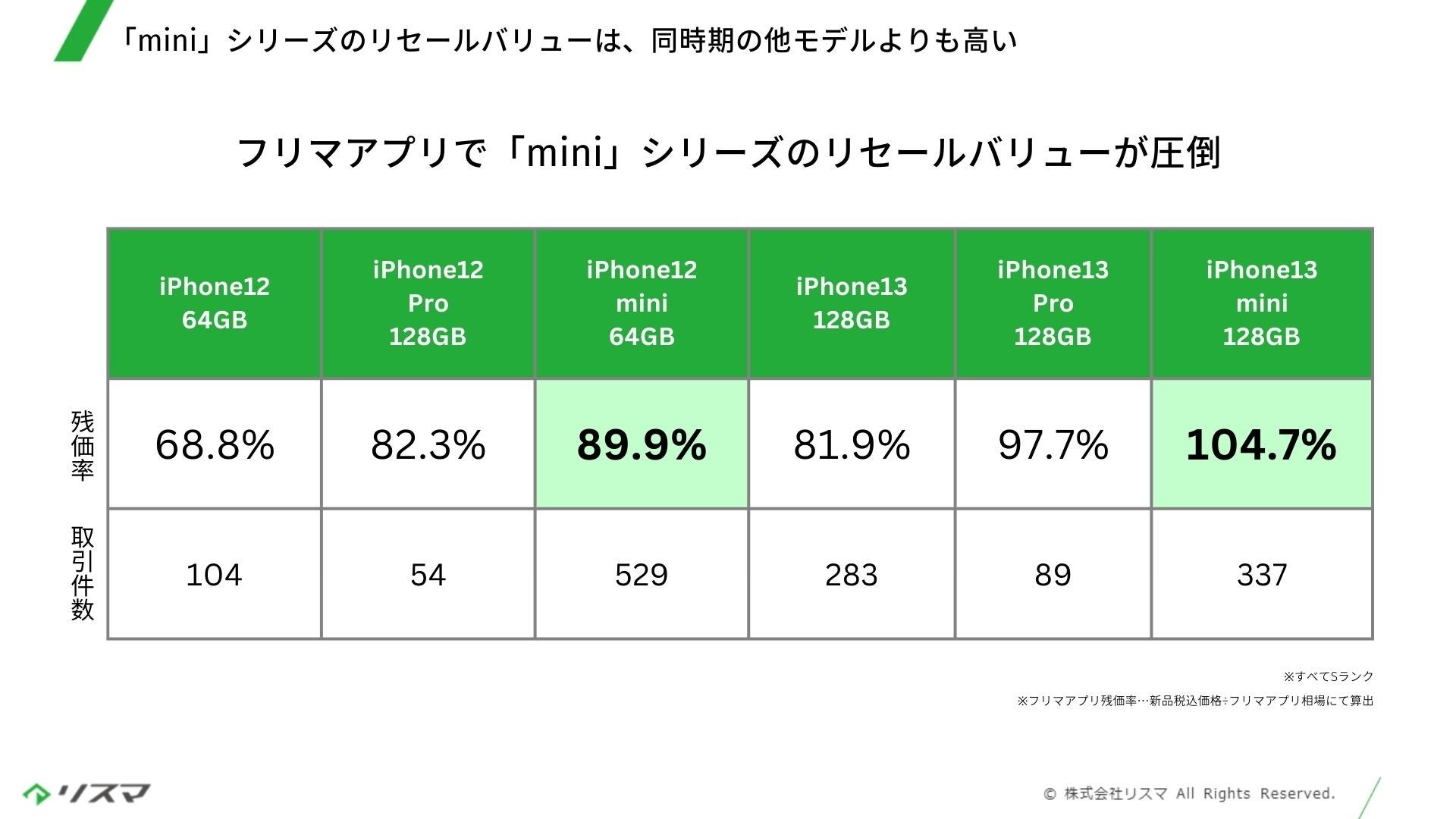 「mini」シリーズのリセールバリューが「Pro」シリーズ超え