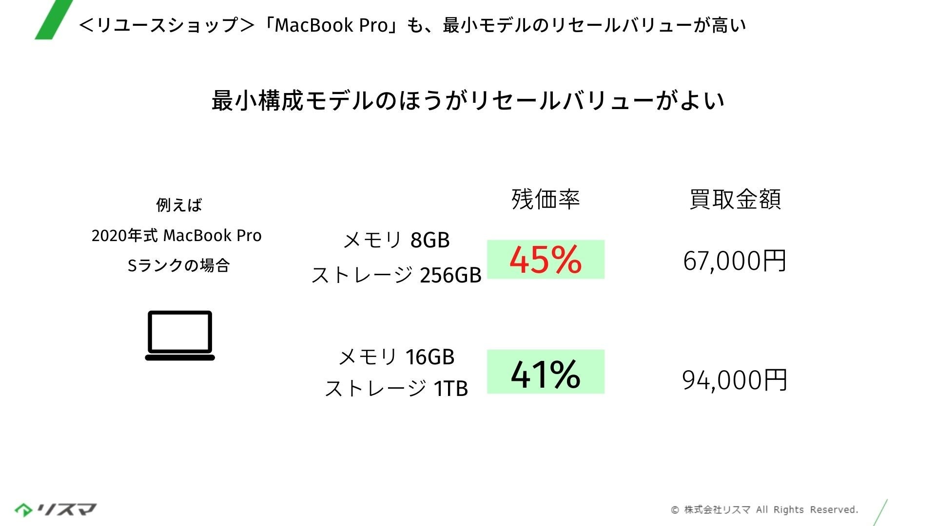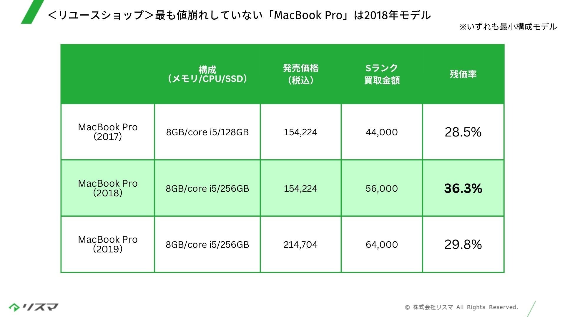 「MacBook Air・Pro」ストレージ最小モデルのリセールバリュー(※1)が高い