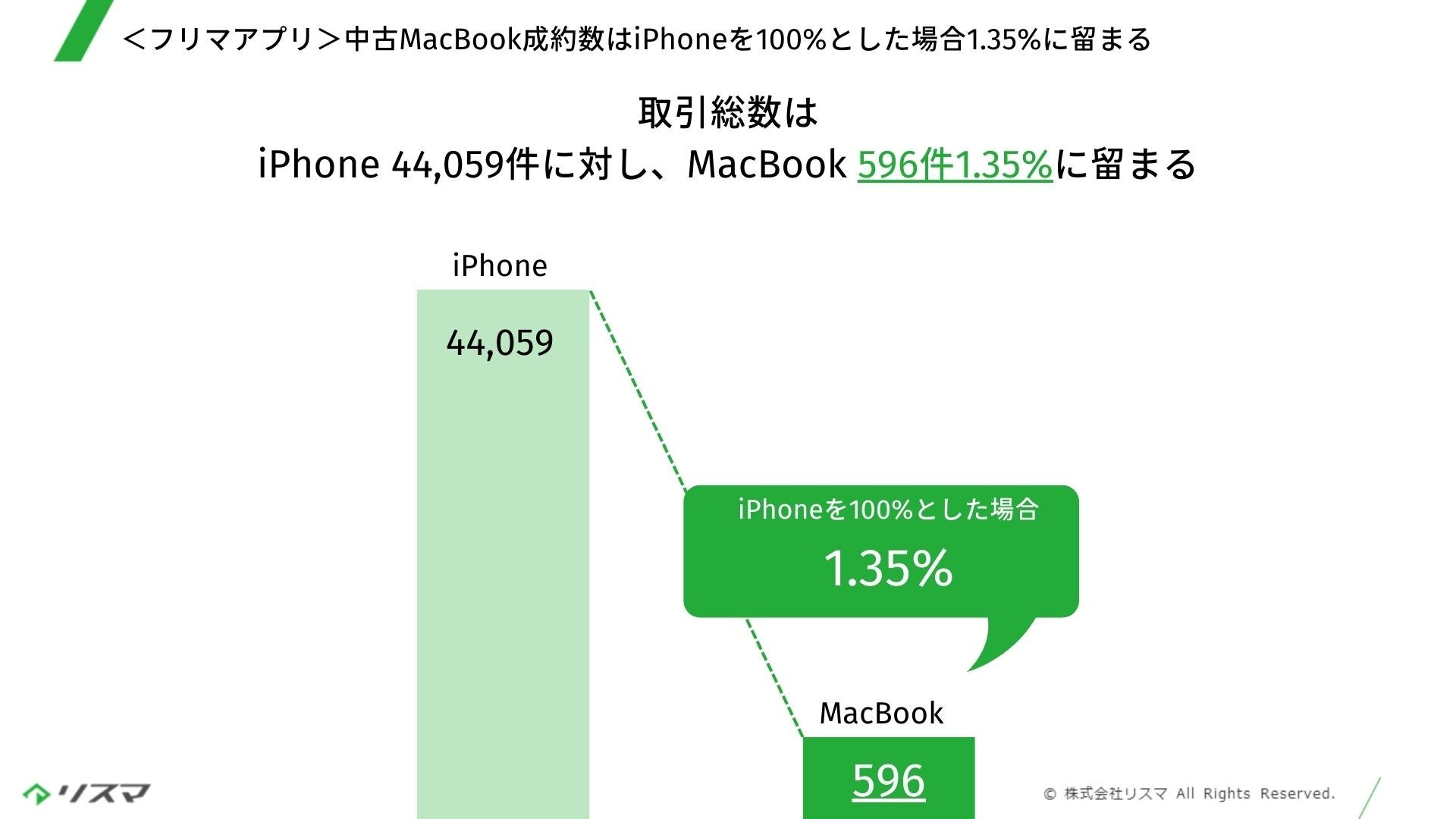 MacBookのフリマアプリ流通量はiPhoneフリマアプリ流通量のわずか1.35%