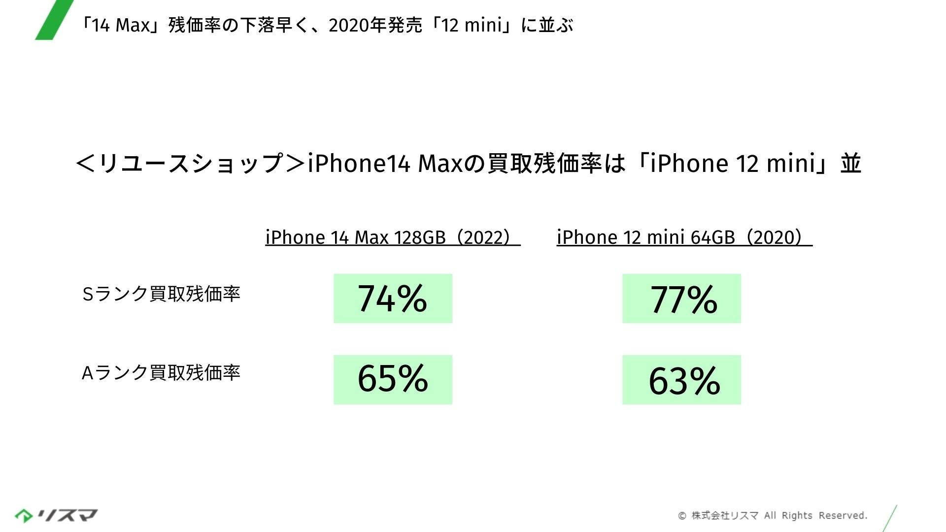 iPhone14 Maxの買取残価率は「iPhone 12 mini」並