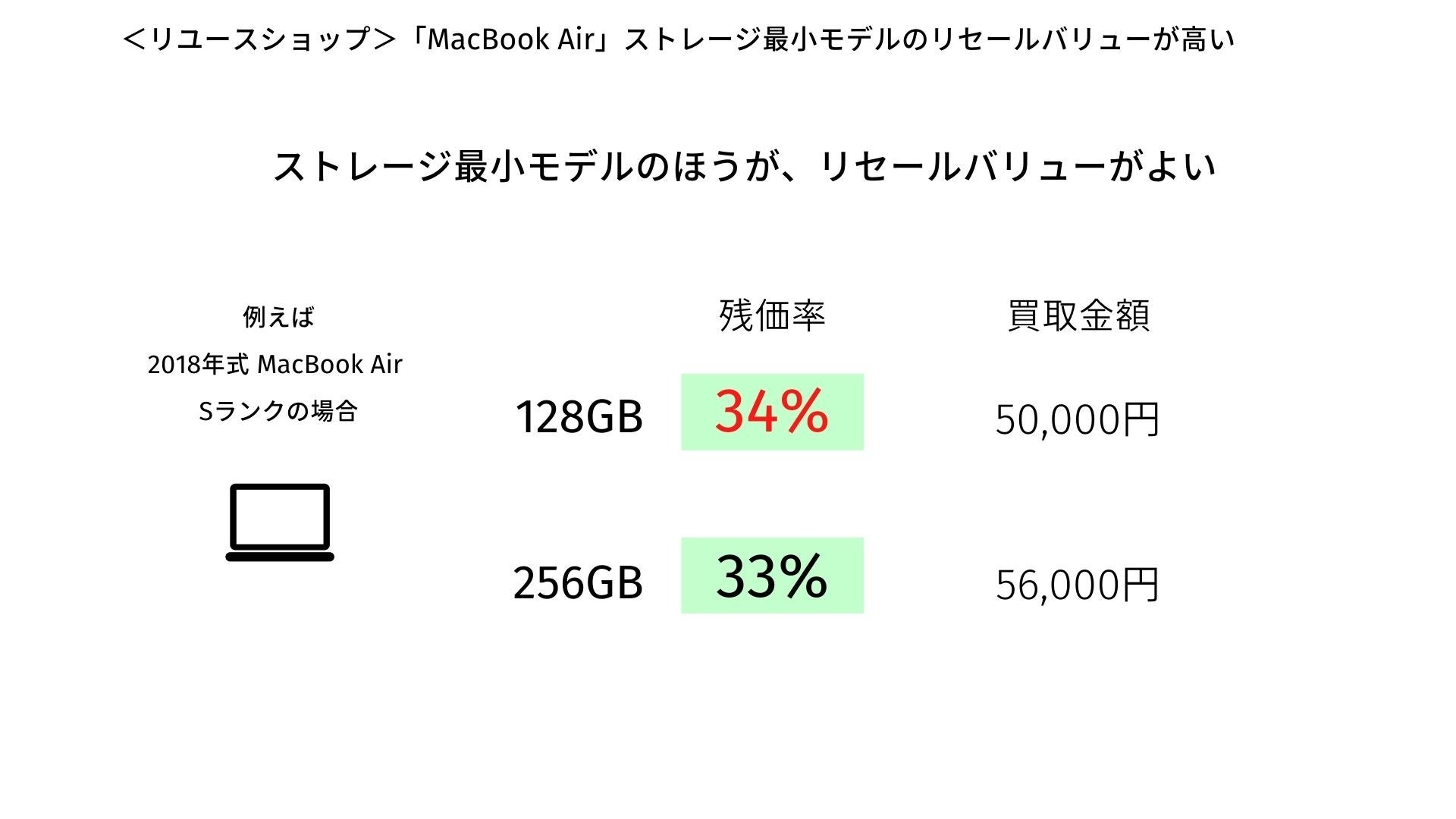 ・「MacBook Air」ストレージ最小モデルのリセールバリューが高い