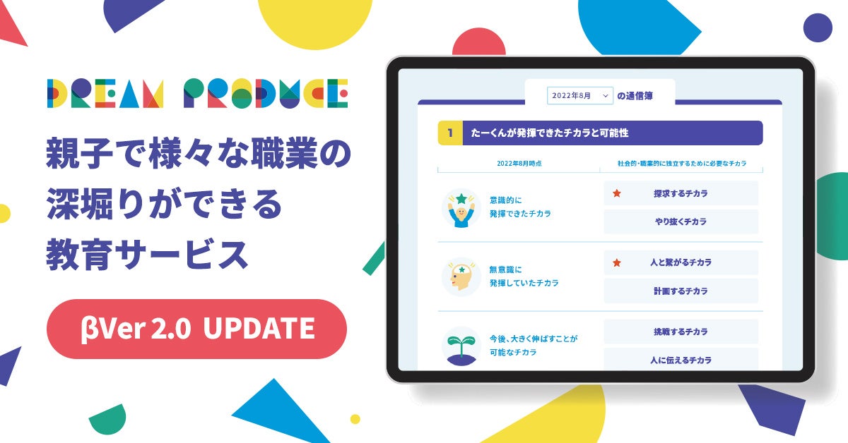 子ども一人ひとりの「現在の個性」にあった職業は何か?がわかる機能「キャリア能力通信簿」をリリース!親子で職業深掘り教育サービス『Dream Produce』β版Ver.2.0(無料!)
