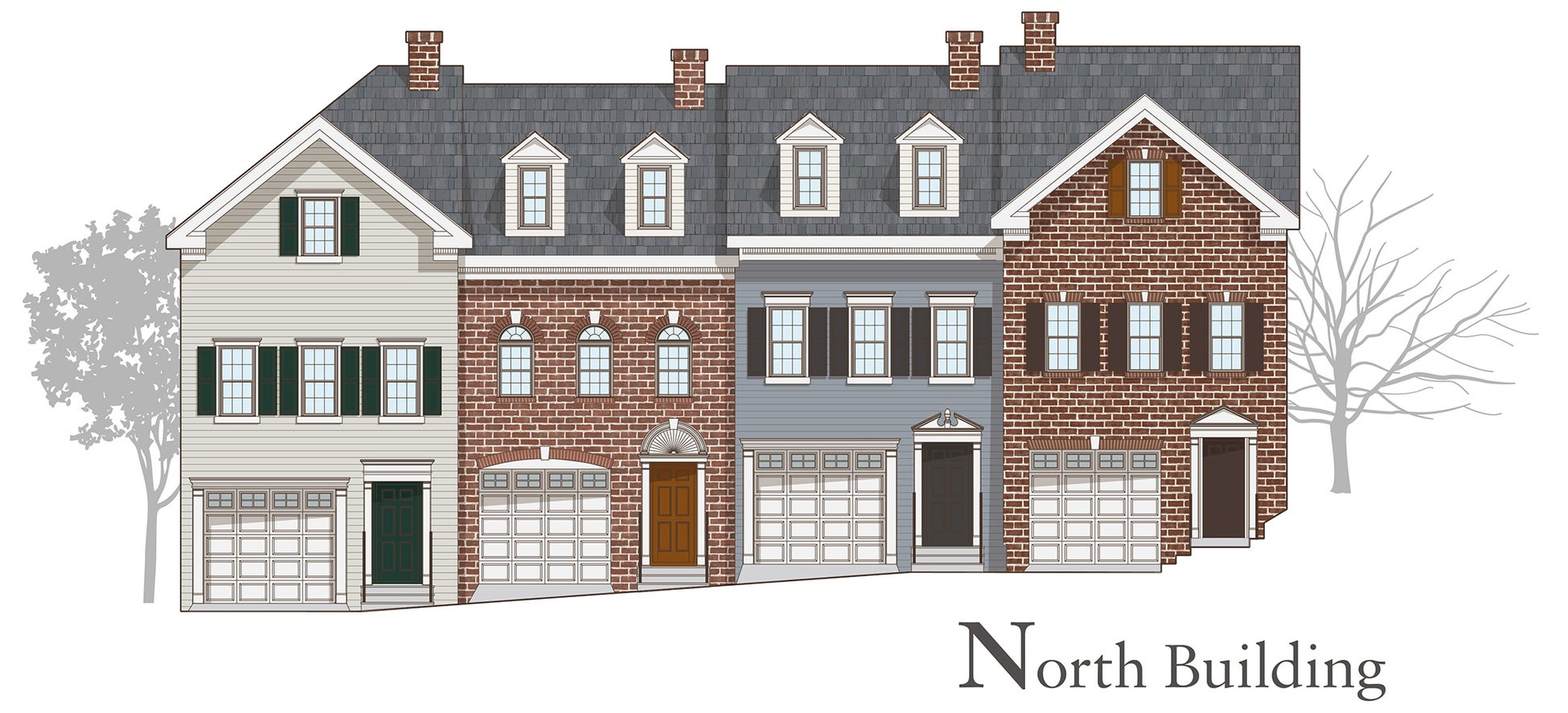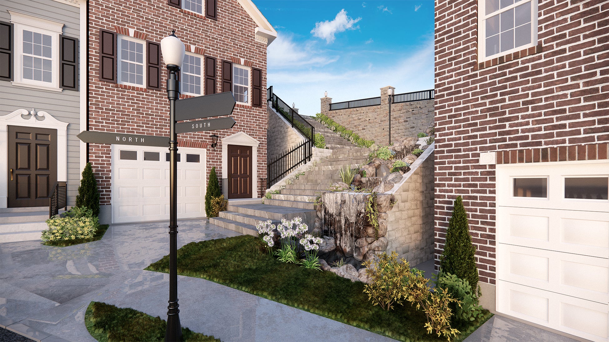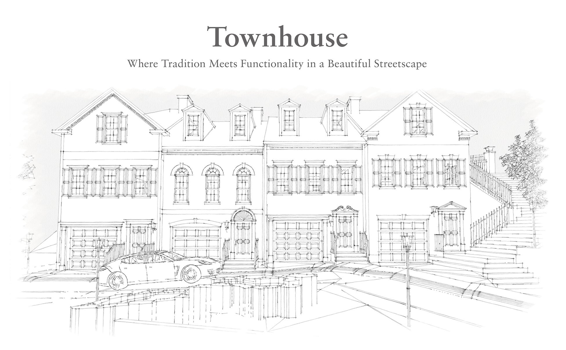 最大の特徴は、アメリカの伝統的な建築スタイルである“タウンハウス式住宅”であることです。タウンハウス式住宅とは、隣戸と接する構造壁がお互いに外装を持たずに連結している住宅形態のことで、個々の住宅という単一的な在り方ではなく、外観の連なりによる住宅地全体のデザイン調和もタウンハウス式住宅ならではの魅力です。