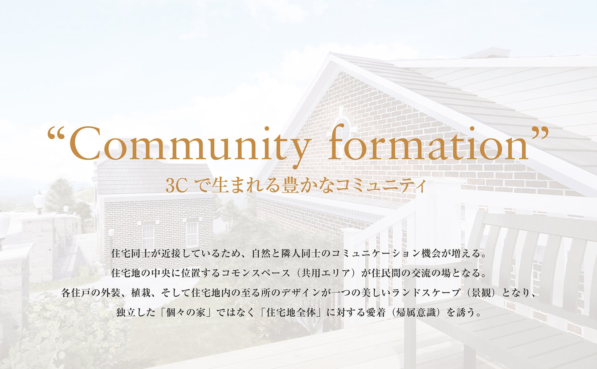 欧米型住宅地開発「3C」が、タウンハウス式の豊かな住まいとアメリカンスタイルの暮らしを提供します。