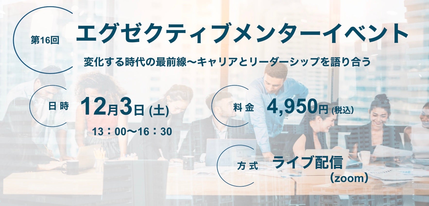 一般社団法人 日本女子経営機構(スクール名:日本女子経営大学院、本社:東京都港区、代表理事:河北 隆子、以下本校)は、エグゼクティブ向けオンラインイベント『エグゼクティブメンターイベント』(以下、本イベント)を2022年12月3日(土)13:00〜16:30に開催いたします。