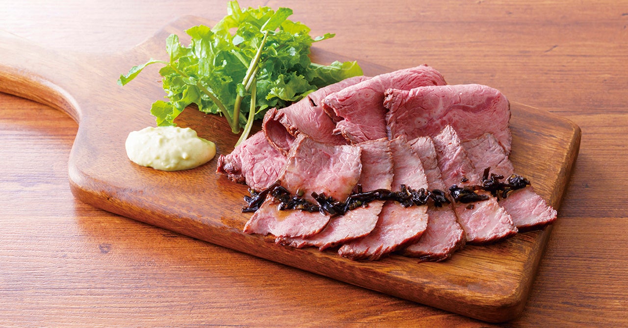 ・旨味たっぷりの黒毛和牛とナチュラルオージービーフのローストビーフ 1,480円