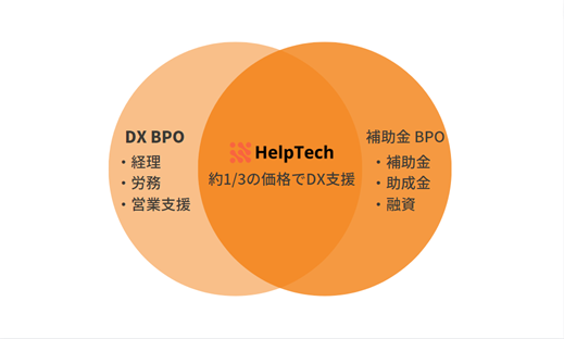 補助金の申請サポートとして事業計画書の作成や申請までで終了してしまうケースが多い中、HelpTech株式会社では事業計画書の作成・申請から、交付申請、実績報告まで一気通貫でサポートを行っています。