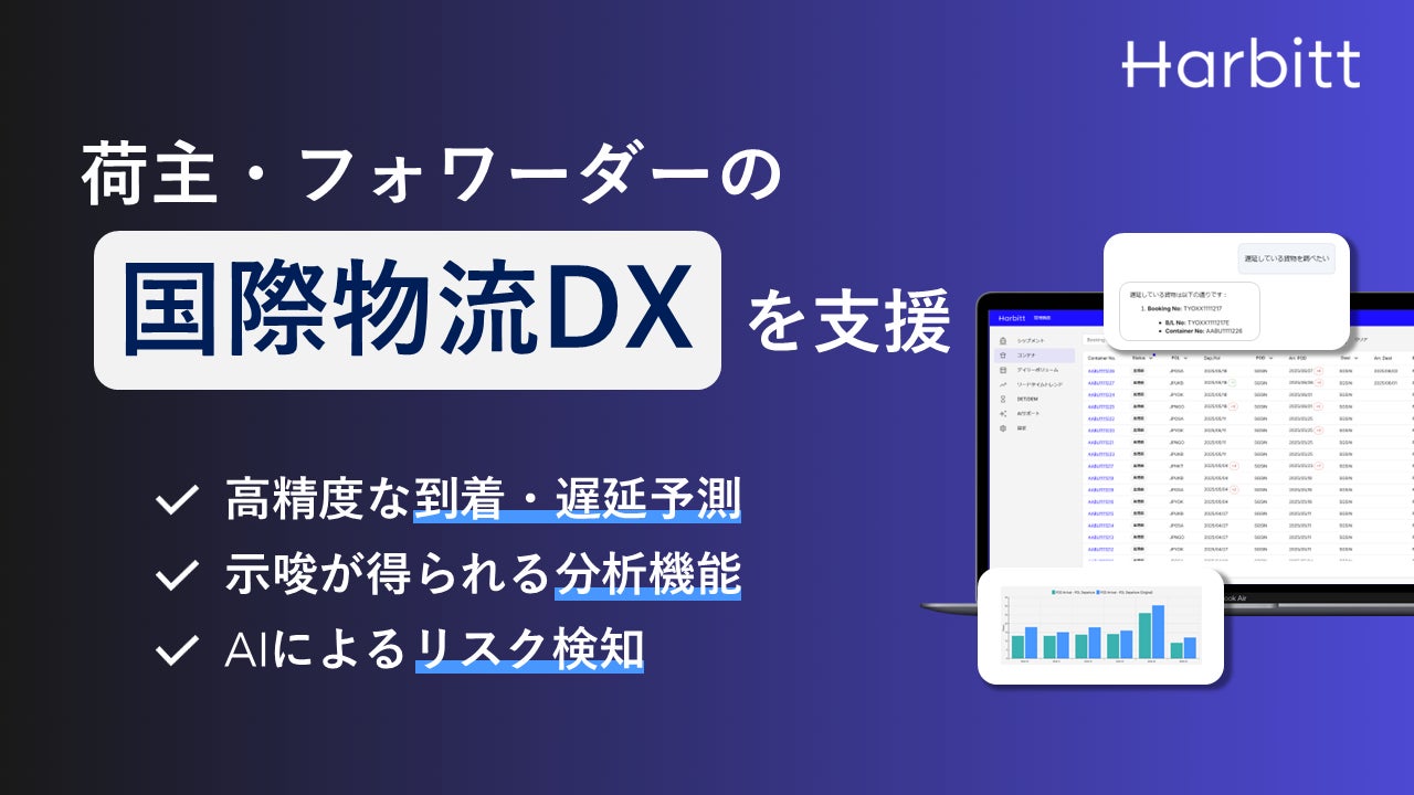 グローバルに複雑なサプライチェーンをもつ大手荷主/大手フォワーダー向けに、国際物流DXを支援するクラウドソリューション「Harbitt」を提供しています。