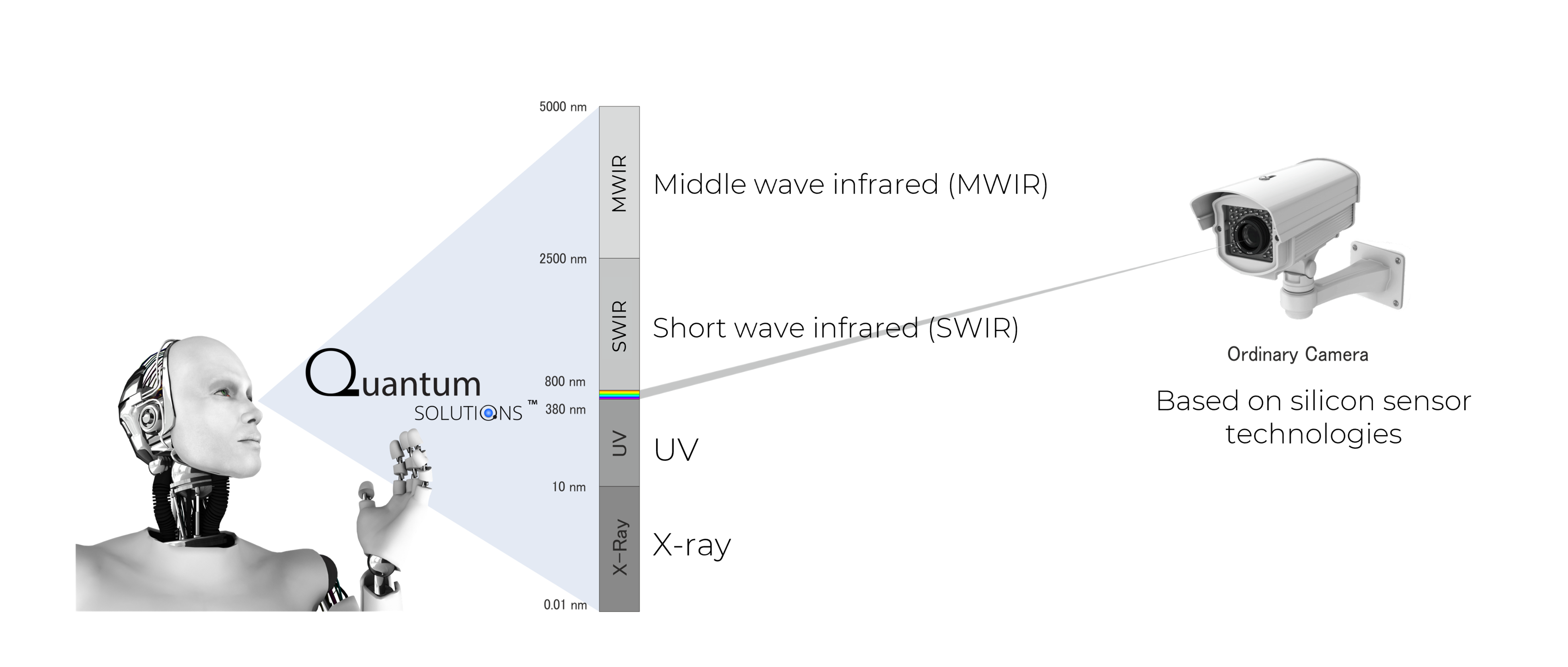 Quantum Solutions, a leading semiconducting materials company, offers a quantum dot platform to enable “wide range” image sensors by supplying quantum dot (QDot™) materials and licensing their technology for integration/processing on silicon chips. These “wide range” image sensors enable “superhuman” vision and capture images that would be invisible to the naked eye, revealing lower energy middle-wave (MWIR), short-wave infrared (SWIR) lights or higher energy UV and X-ray lights.