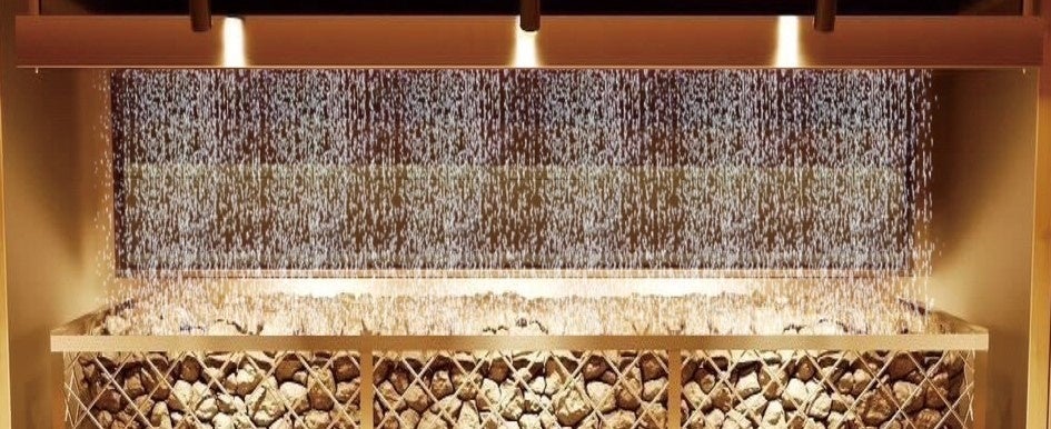 10分に1回滝のように大量の水が降り注ぐ、「ナイアガラロウリュ」にて、一気に蒸し上げます!圧巻の水量による美麗なロウリュを体感せよ!