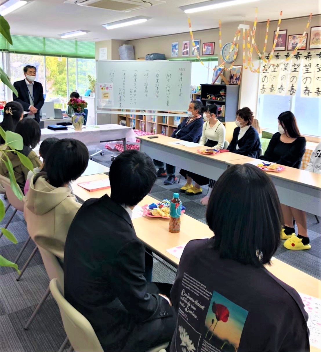 当日は、在校生手作りの「コサージュ」を胸につけた卒業生が入場し、卒業証書の授与に加え、支えてくれた家族へ手紙と花束を贈るセレモニーなど、様々な困難にも一緒に立ち向かい支え合った、家族や在校生へ感謝を伝える式典となっております。