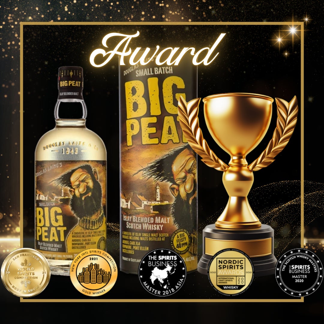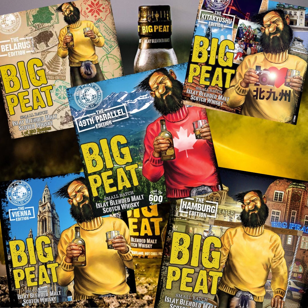 BIG PEAT(強烈なピート)とBig Pete(ピートおじさん)という、ウイスキー好きの心をくすぐるユーモアたっぷりの言葉遊びと、インパクト抜群のイラストがブランドの個性を際立たせています。