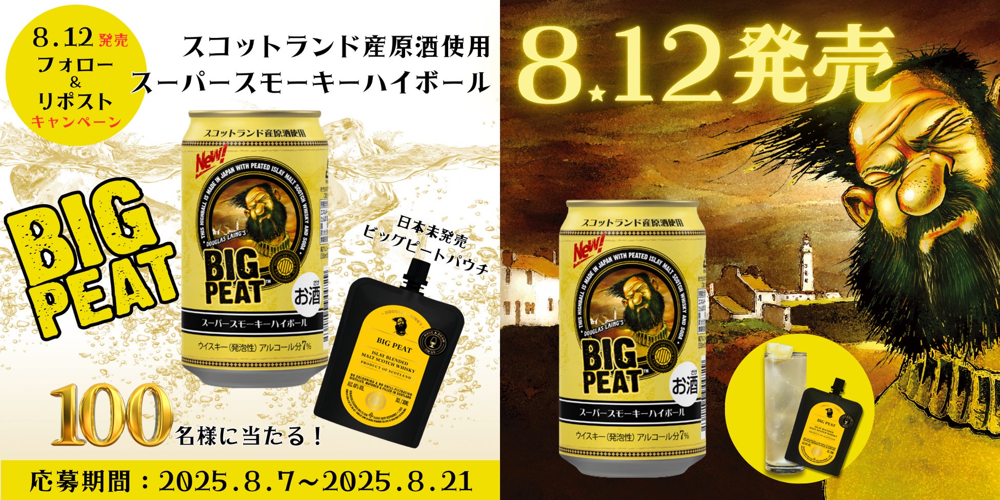 株式会社ジャパンインポートシステム(東京都中央区 代表取締役社⻑ 田中克彦)は、スコットランド産の個性派ウイスキー「ビッグピート」ブランドから初のRTD(Ready To Drink)商品『スーパースモーキーハイボール』が、2025年8月12日(火)から全国のローソン店舗にて数量限定で発売されることをお知らせします。