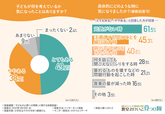 今回の調査では、9割近くの親御さんが、子どもが何を考えているか気になったことがあることが明らかになりました。