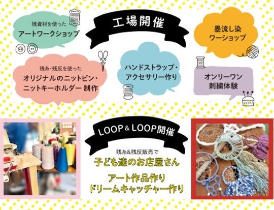 残資材を使ったアートワークショップや、ハンドストラップ・アクセサリー作り、オンリーワンの刺繍体験など、五泉ニットならではのラインナップ。