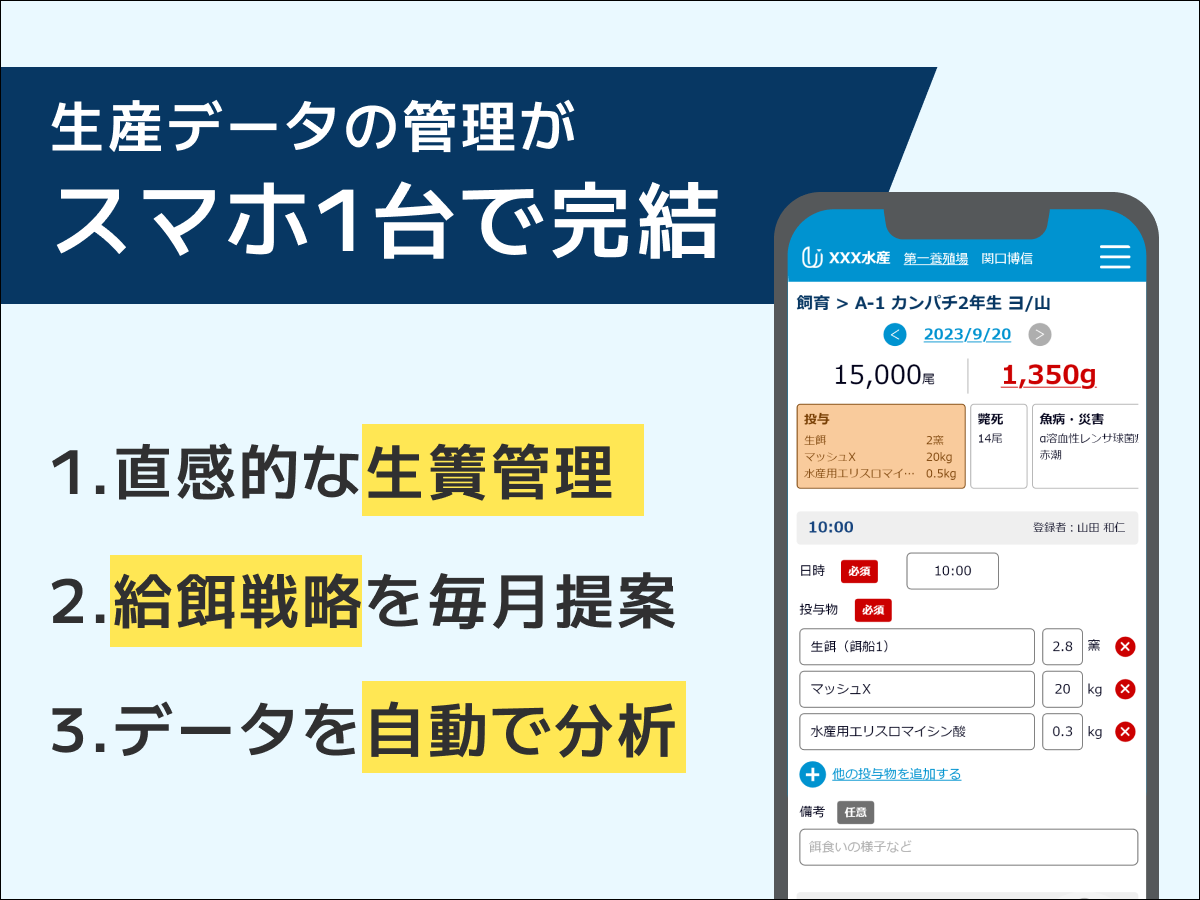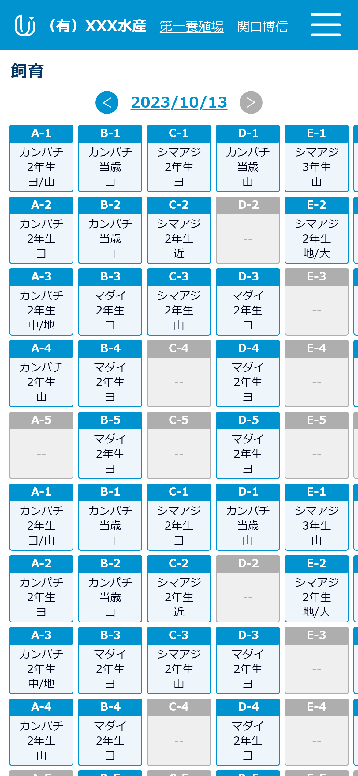 分養や統合を行うと生簀構成が週や月の途中で変わってしまうため、これまでの表計算ソフトや業務用ソフトでは生産データの記録・管理・振り返りを直感的に行うことは困難でした。