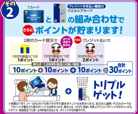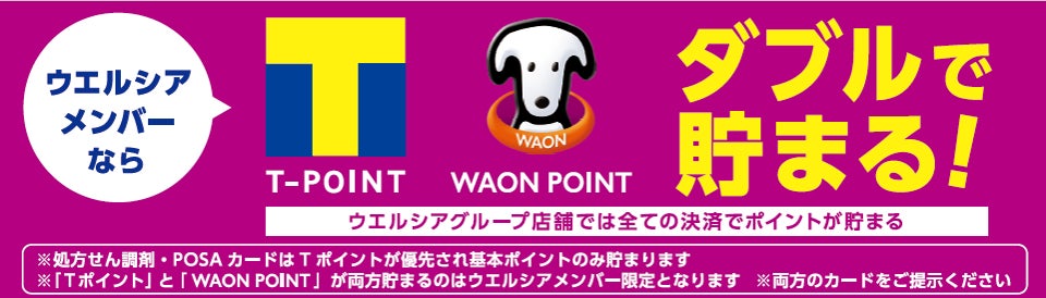 ウエルシアメンバーなら、TポイントとWAON POINTがダブルに貯まる4倍のチャンス、さらに
