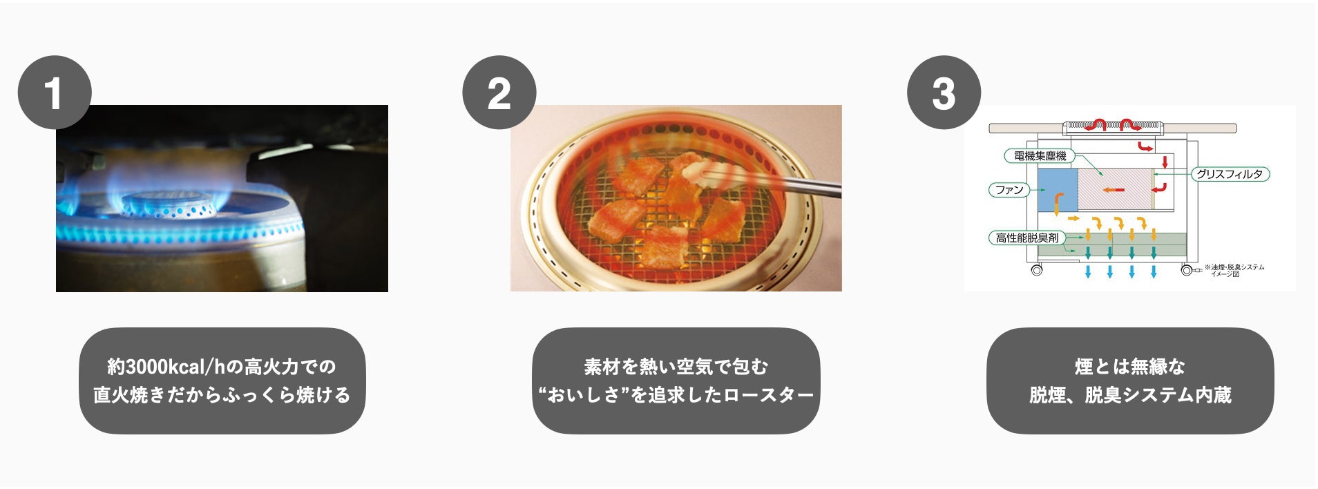 - ②無煙ロースター(ノンダクトタイプ)の導入