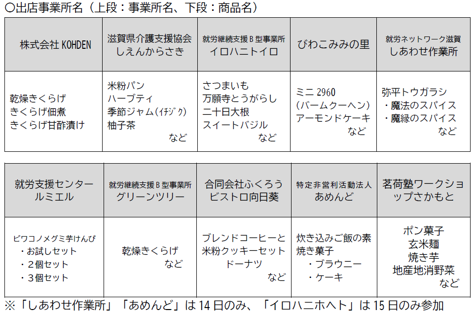滋賀県内で「農福連携」に取り組む障害者就労施設や農業者が取り扱う商品を販売する「びわ湖まん福市場」(滋賀県農福連携マルシェ事業)を開催中です。多くの皆様の御来訪をお待ちしています!