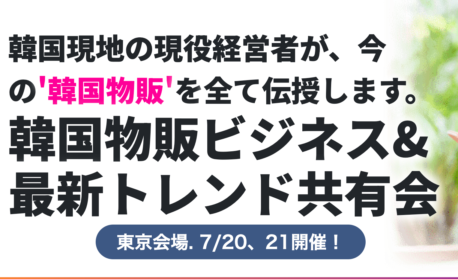 韓国物販ビジネス&最新トレンド共有会 7月20日(土)東京・渋谷、21日(日)新大久保にて開催!