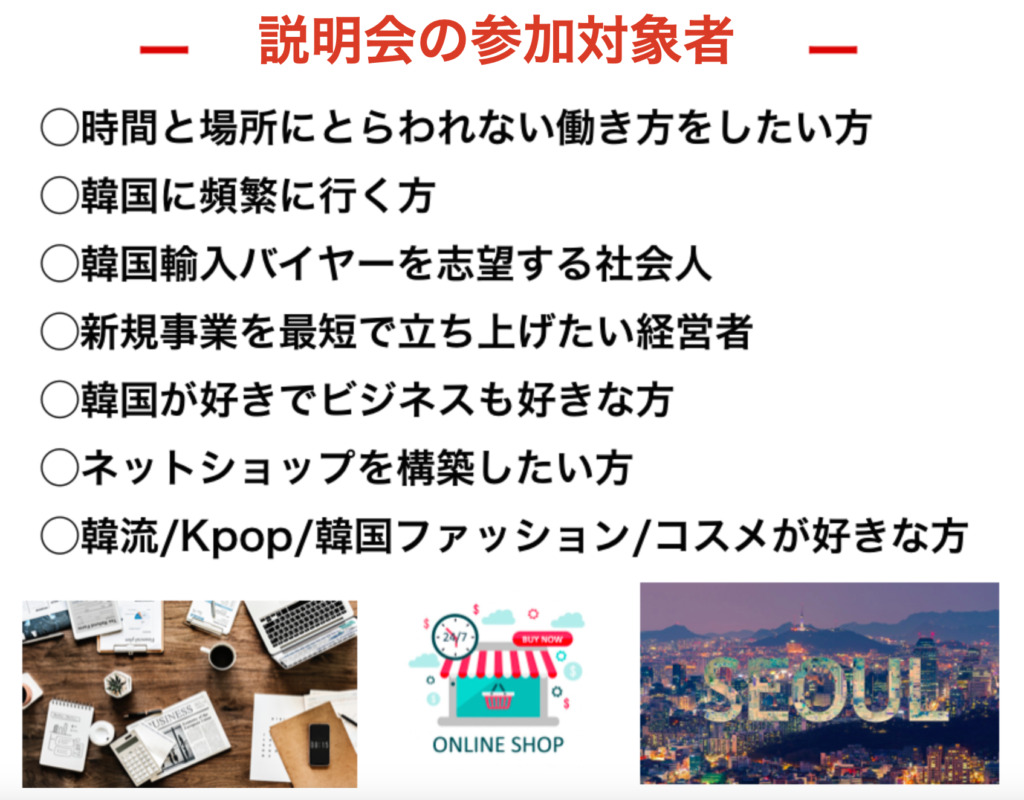 この3時間のセミナーに「韓国物販」の今を全て込めました。
