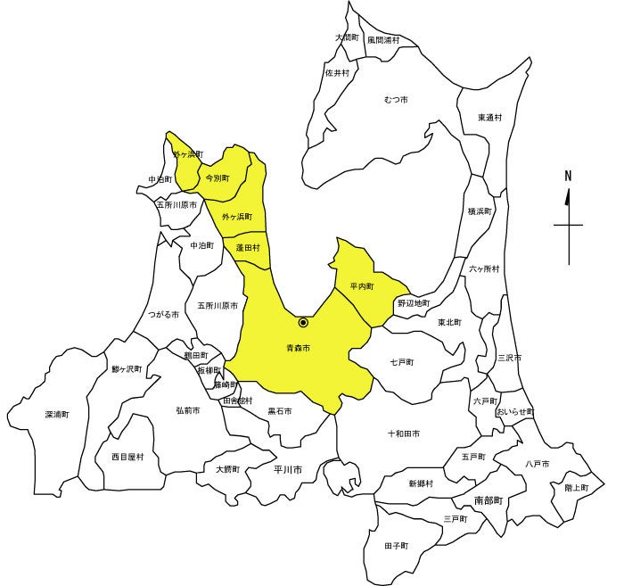 東青津軽は、青森市を中心に、津軽半島に沿って蓬田村、外ヶ浜町、今別町、そして夏泊半島に位置する平内町の5市町村で構成されています。地域内の市町村はすべて陸奥湾や津軽海峡に面し、豊富な海の幸や山の幸など農林水産資源に恵まれ、八甲田山や青森ねぶた祭などの観光資源を有しています。