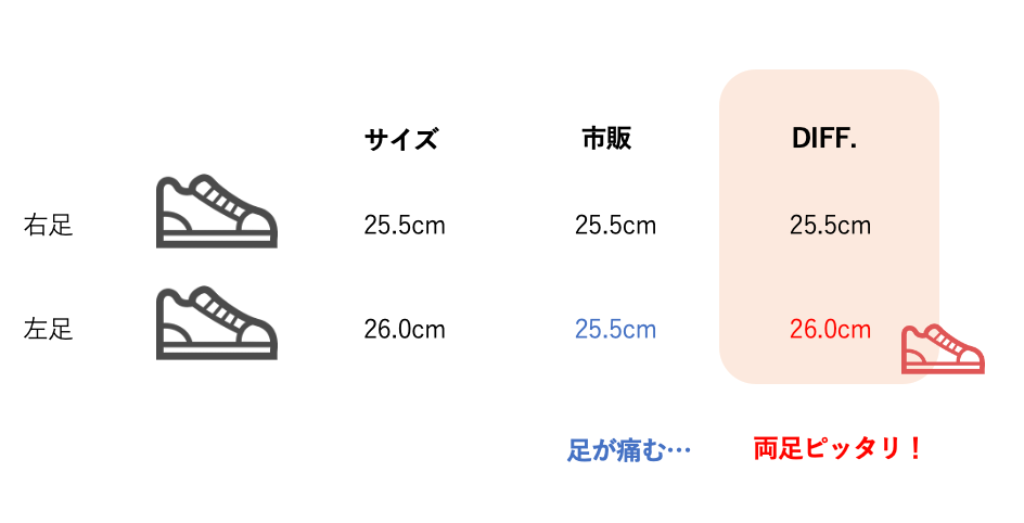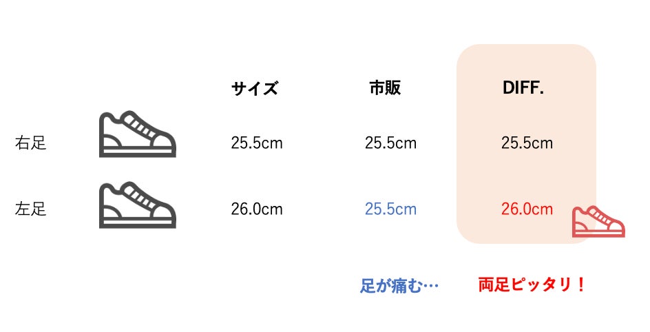 「足の怪我や不安」「費用・価格」に悩む方々に向けて、オンラインでシューズを片方ずつ購入できるサービス『DIFF.』を作りました。