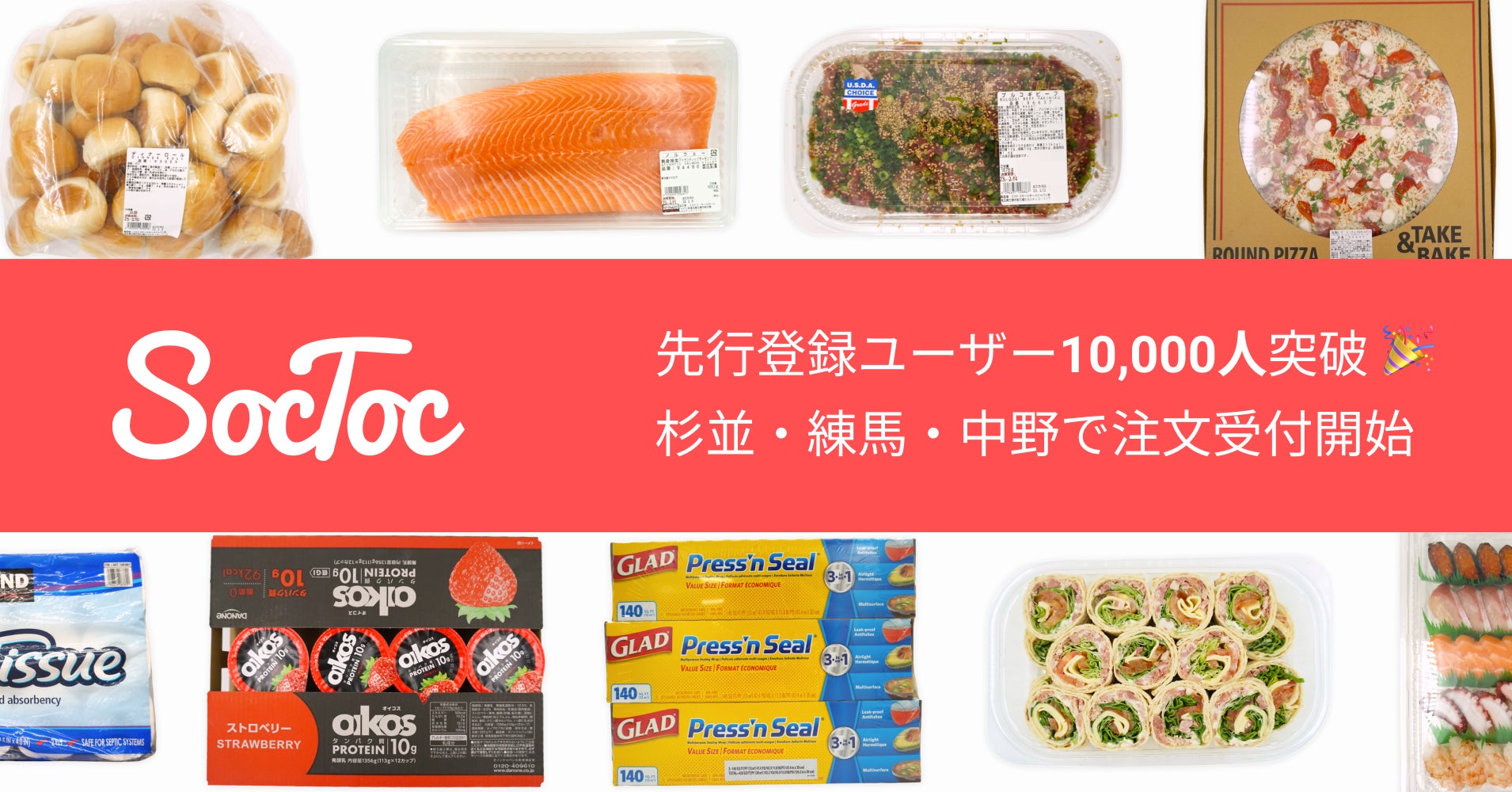 コストコ専門ネットスーパーSocToc、杉並・練馬・中野で注文受付開始、先行登録10,000人突破記念クーポンを期間限定配布