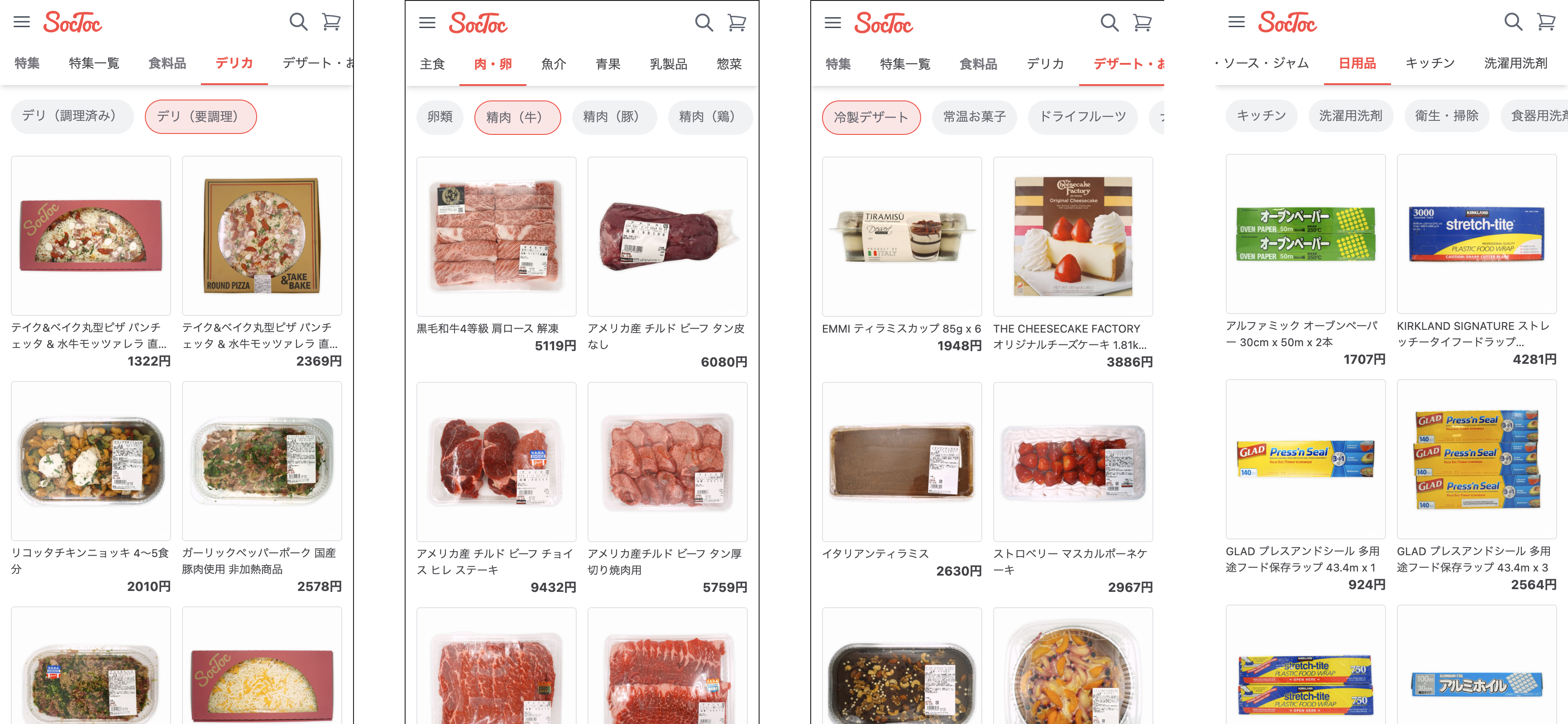 SocTocは、会員制倉庫型店コストコで人気のデリやベーカリー、精肉・鮮魚といった生鮮食品を購入することができる「コストコ専門ネットスーパー」サービスです。スマホから注文することで時間帯指定でコストコの商品をご自宅までお届け。コストコ会員でなくても年会費0円で利用可能です。「コストコの商品は量が多くて購入が難しい」というニーズに対応し、独自に小分け・詰め合わせの商品も提供します。
