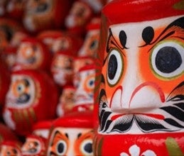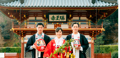 以後、源氏や足利氏、豊臣氏ら時代の覇者が戦勝祈願したとされ、勝運信仰が広まりました。現在でも試験・商売・就職・スポーツなど、あらゆる場面での「勝運」を祈る参拝者が数多く来訪し、境内には、勝運を祈る「勝ちダルマ」が奉納されています。