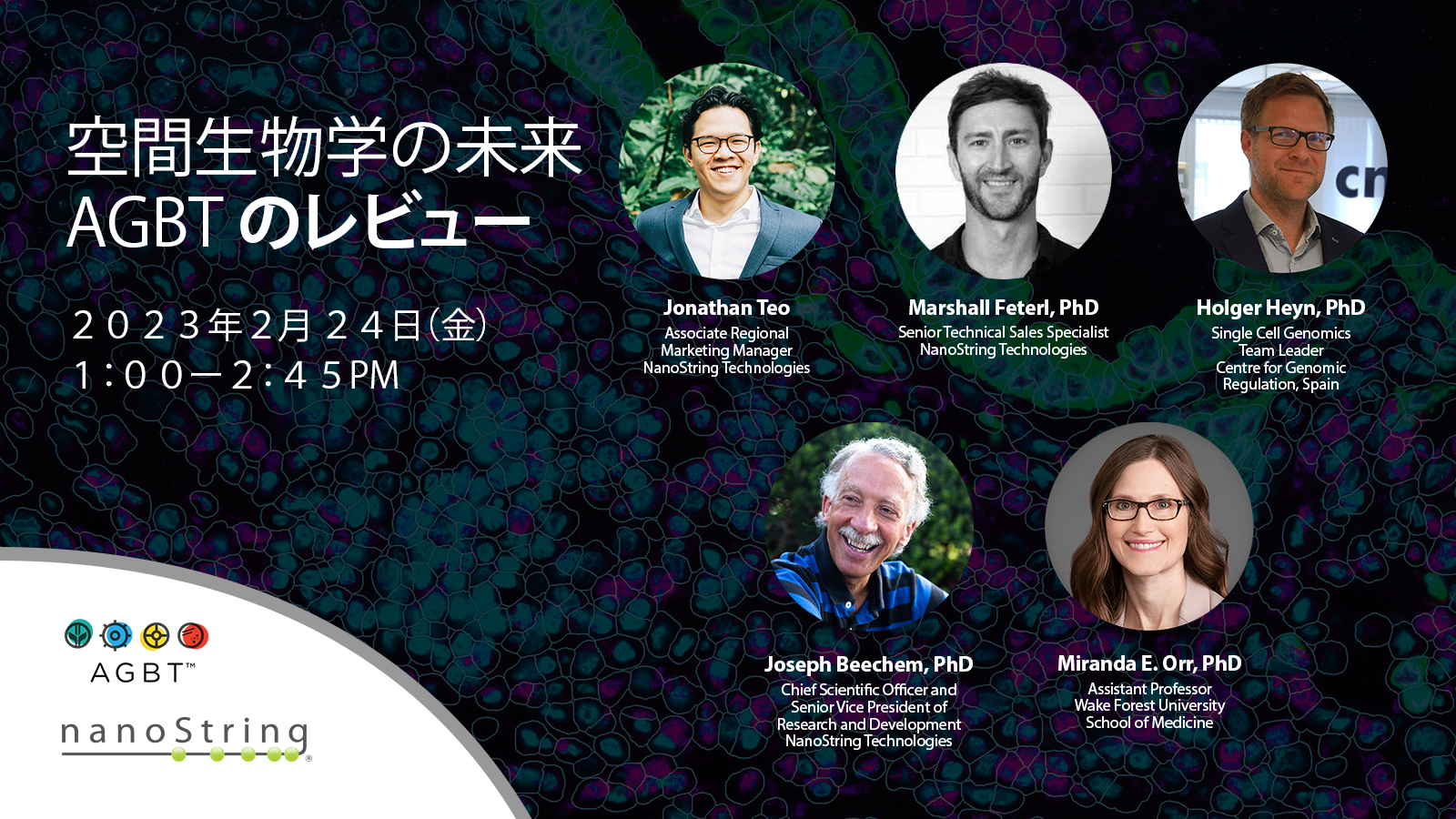| アジアパシフィックでは2月24日(日本時間午後1時)に、このGold Sponsorワークショップの内容を字幕つきでの配信いたします。ご関心のある方はこちらのリンクよりご登録ください。<https://nanostring.zoom.us/webinar/register/2016757504410/WN_729oie96ToK3gONqPJ8wgg> |