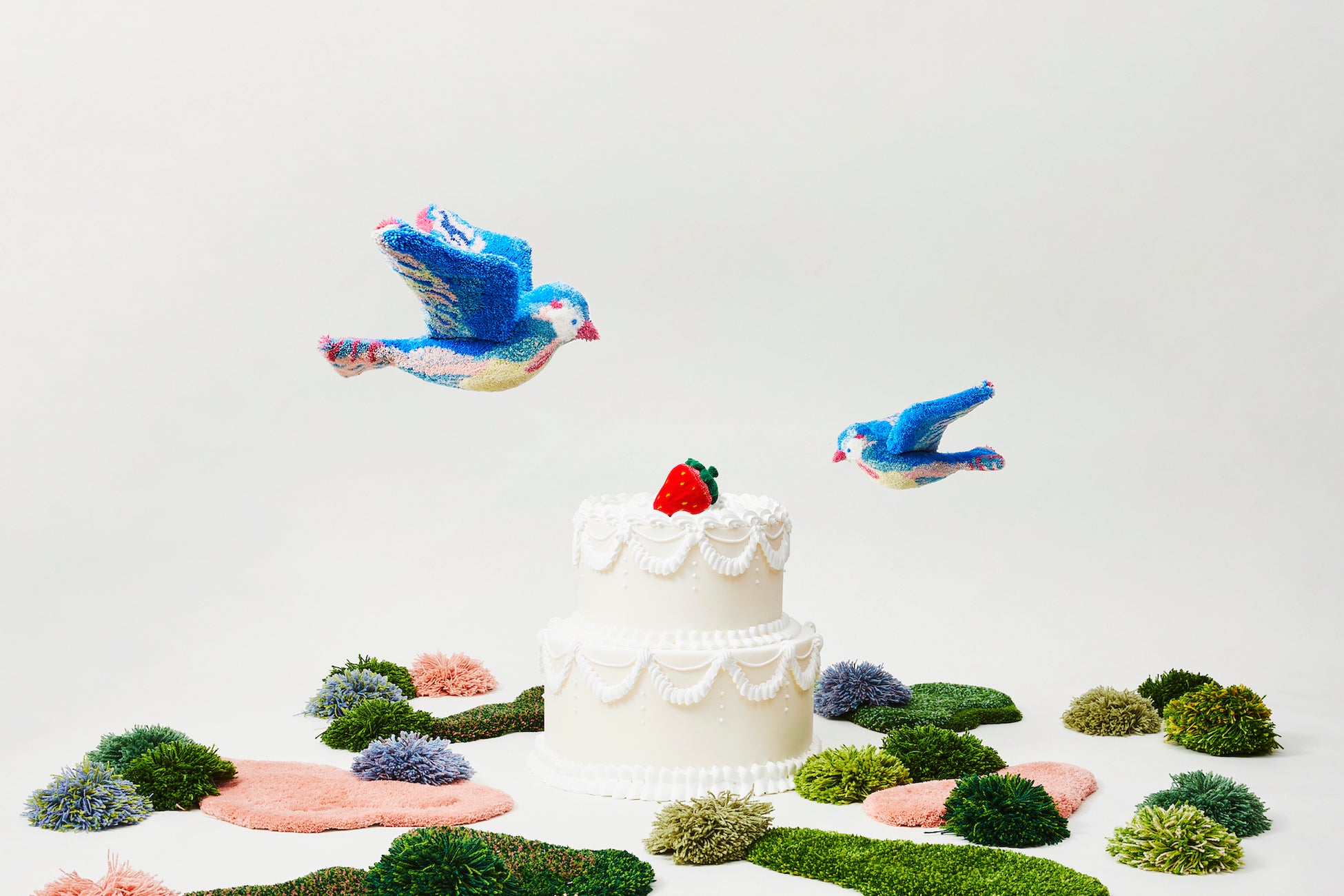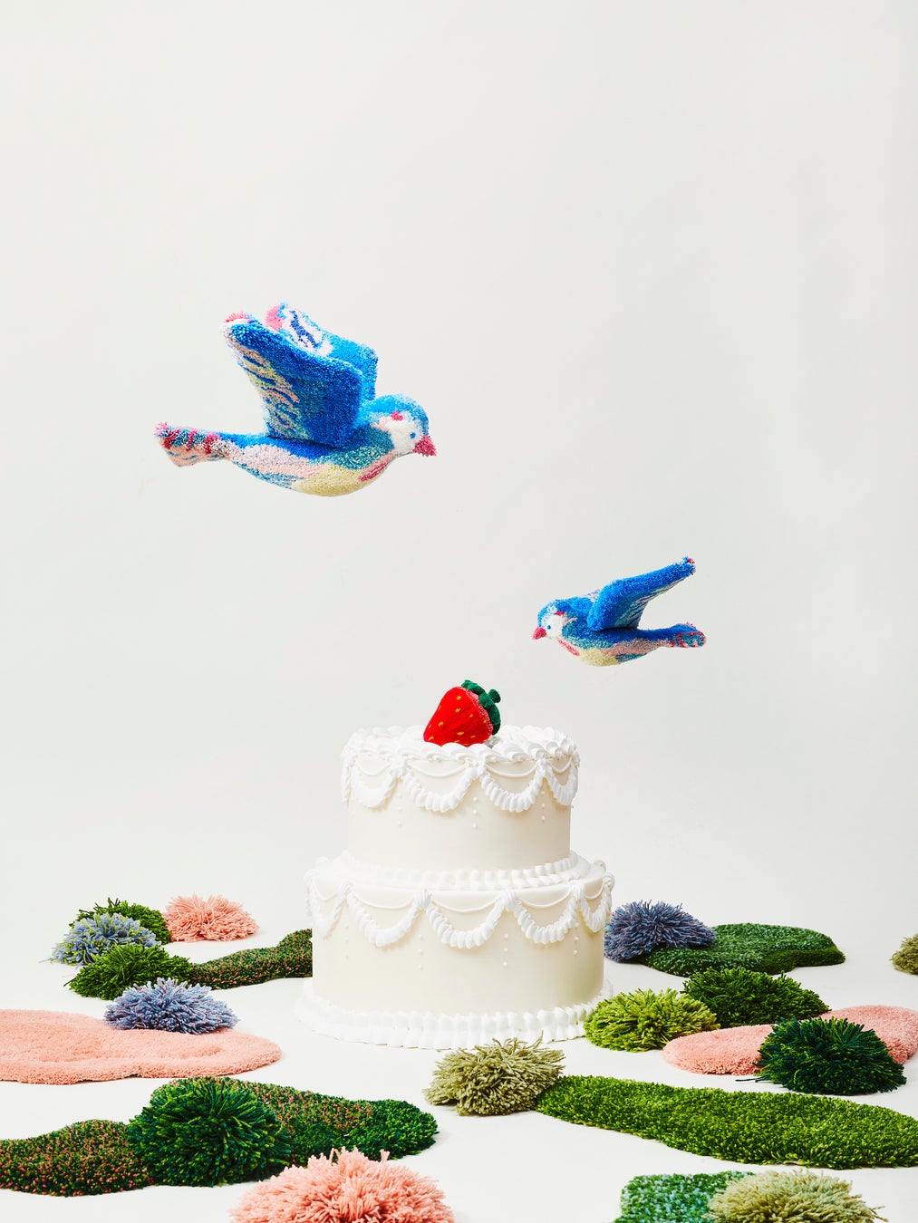 そこで、人の手で作りあげられるタフティングというファブリック技法を活用して、温かさが残りつつも繊細でポップなアート作品に仕上げました。
