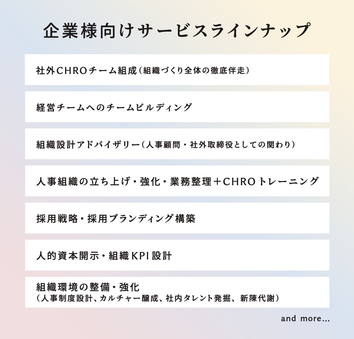 ・社外CHROチーム組成(組織づくり全体の総合支援)