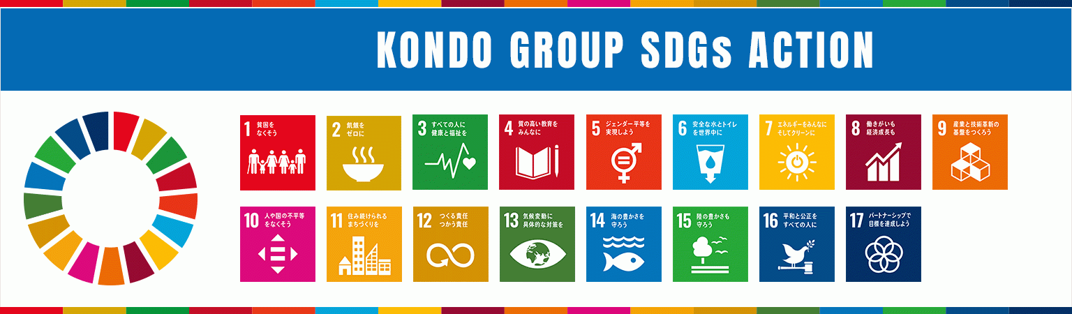 一つは、地域でのCSR活動や若手技術者の育成、環境に優しいCLT工法の導入などを通じてこれまでKONDOグループで行ってきた取り組みとSDGsに相通じるものが多くあったということ。もう一つは、社会、経済、環境と多岐にわたる17の目標と169のターゲットで構成される国際目標は、2030年はもとより、未来に繋がる羅針盤から経営環境の潮流になると考えたためです。