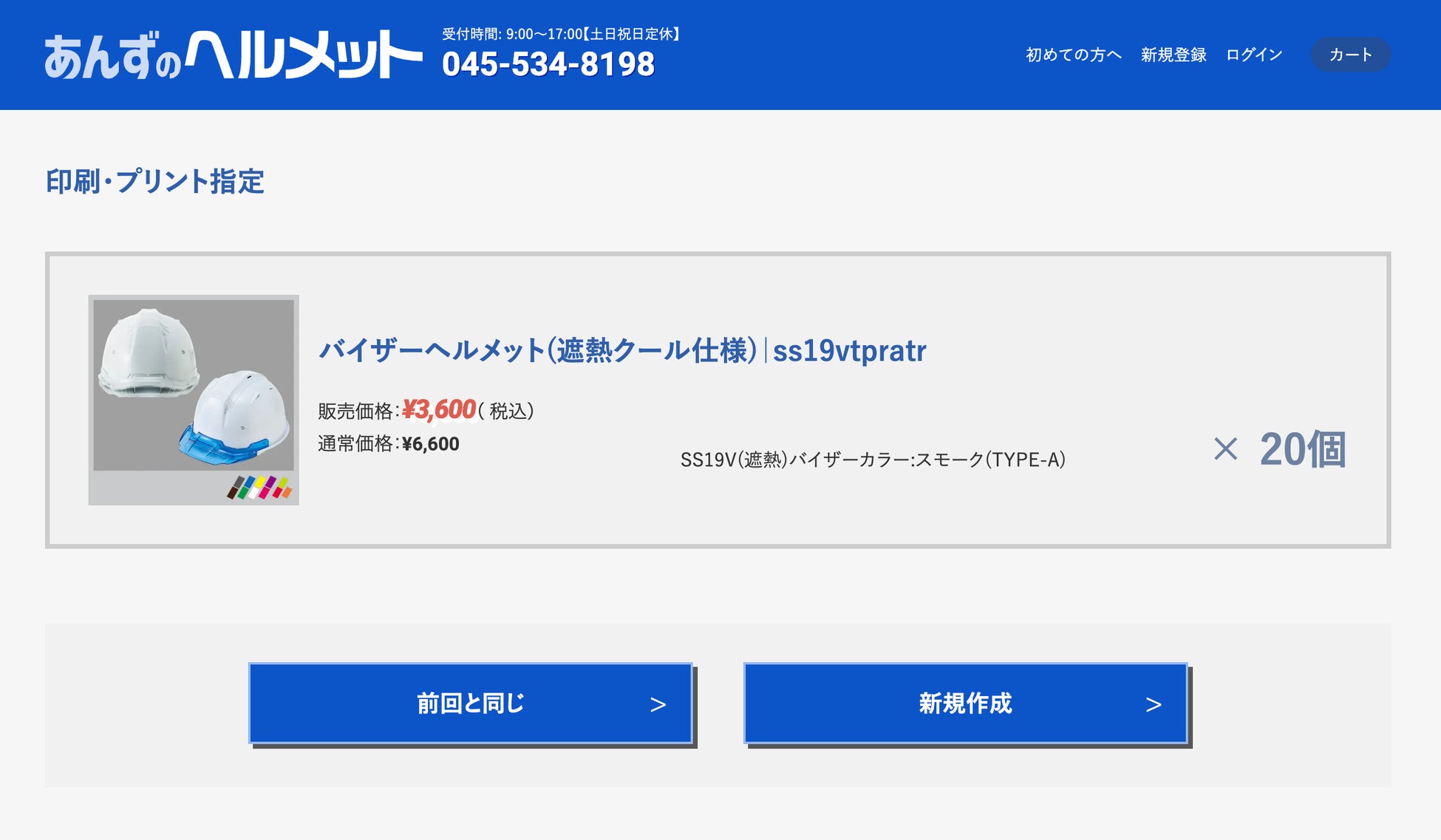 弊社ショッピングサイトでお好みのヘルメット20個をカートに入れます