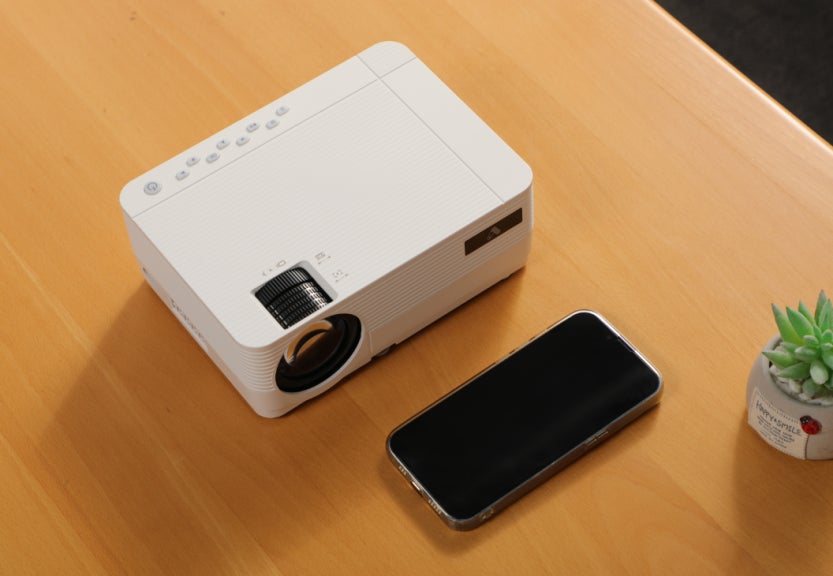 RV500プロジェクターのサイズをiPhone13と並べて比べました。小さい!