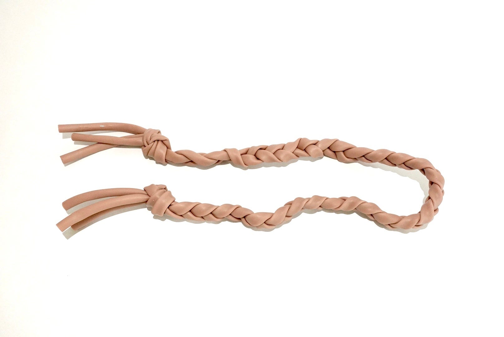 動物看護士が作った、ゴム製の三つ編みをしたひっぱりっこチューブ