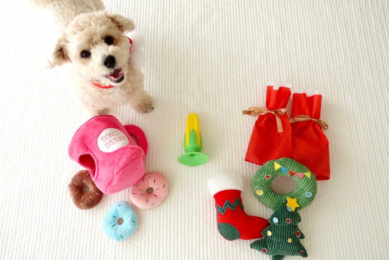 「クリスマスぬいぐるみセット」「ドーナツとマグカップのノーズワークセット」「歯磨きもできる天然ゴムのとうもろこし」など動物看護士が1点1点厳選した商品は、健康的に楽しく遊べるうちのこも大満足のおもちゃです。