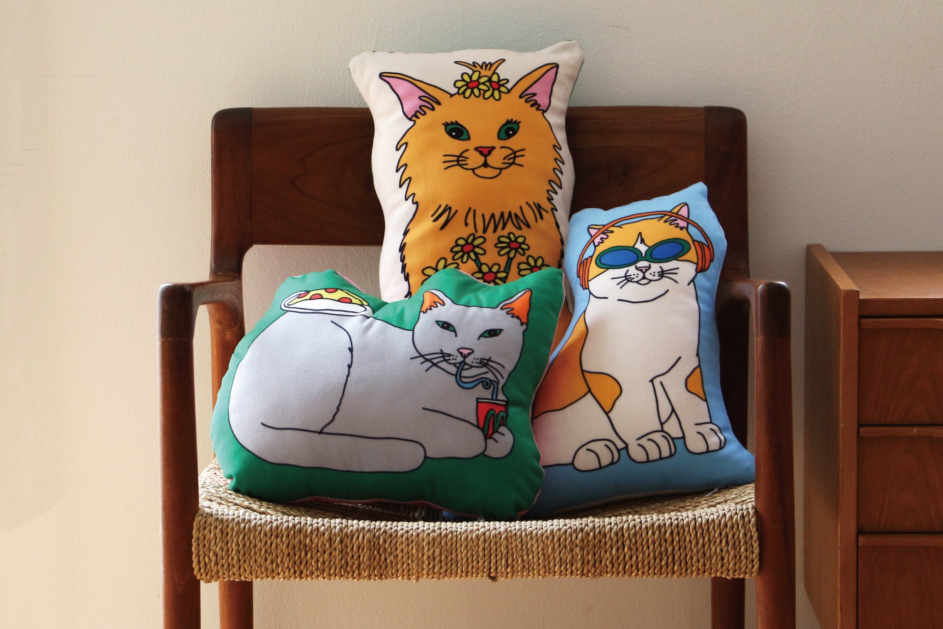 飾っておくだけでつい笑顔になってしまうかわいらしいデザイン。リビングでの使用のほか、お子さまのお昼寝用のまくらや、車の中、ペット用のクッションなどとしてお使いいただくのもおすすめです。それぞれのクッションと同じ犬種・猫種の飼い主さんへの贈りものにもぴったりです。