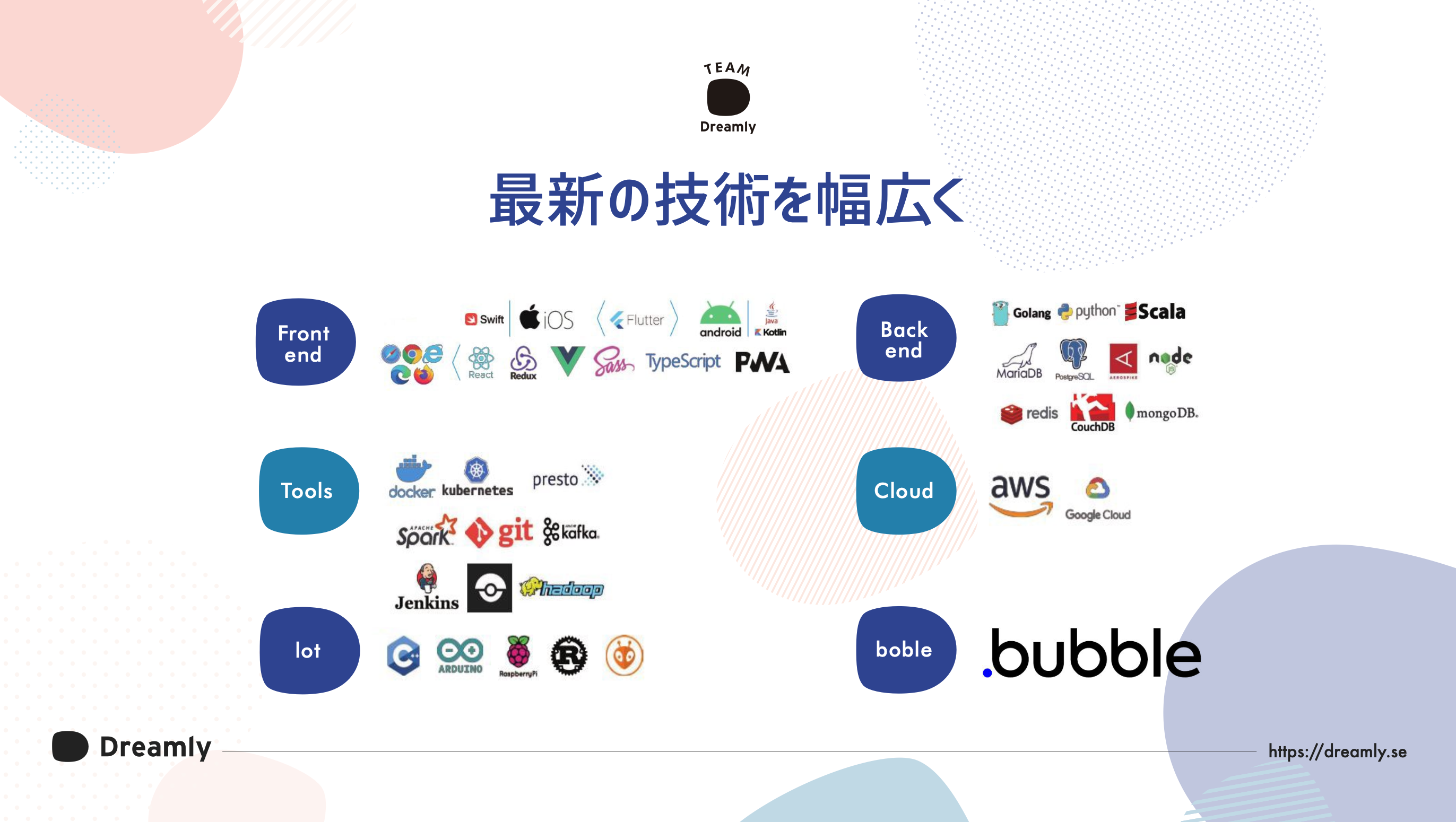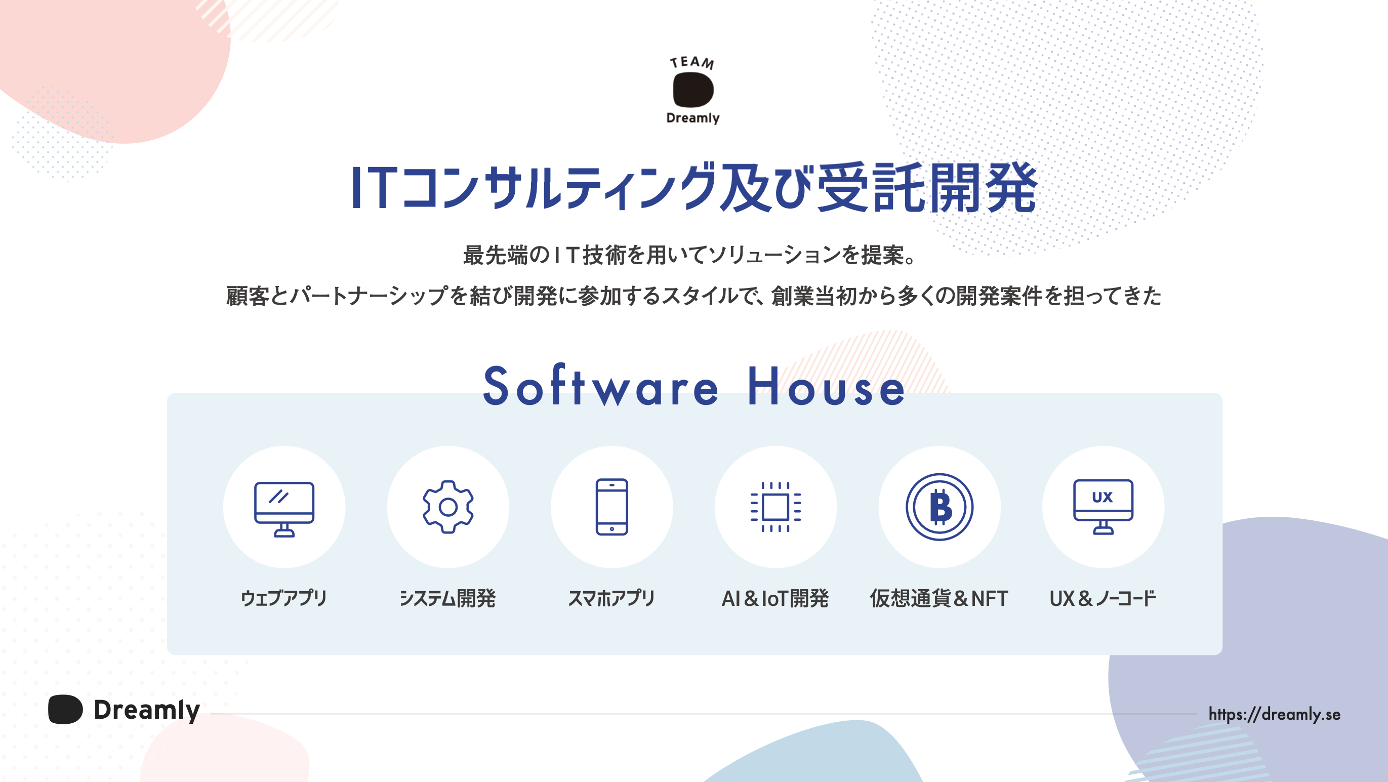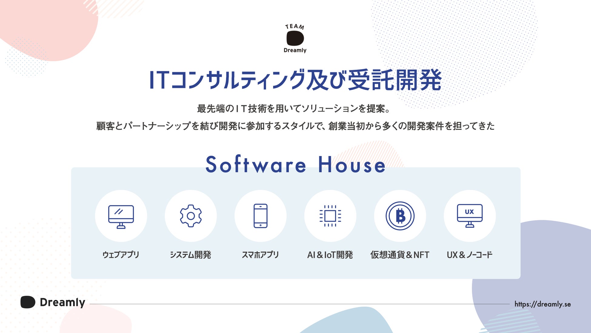 Dreamlyは、地方(香川県)を拠点に国際的なマインドセットを持って人情味あるIT社会を目指すスタートアップで、日本や北欧の新しい製品開発に最先端のソフトウェア開発技術を提供しています。