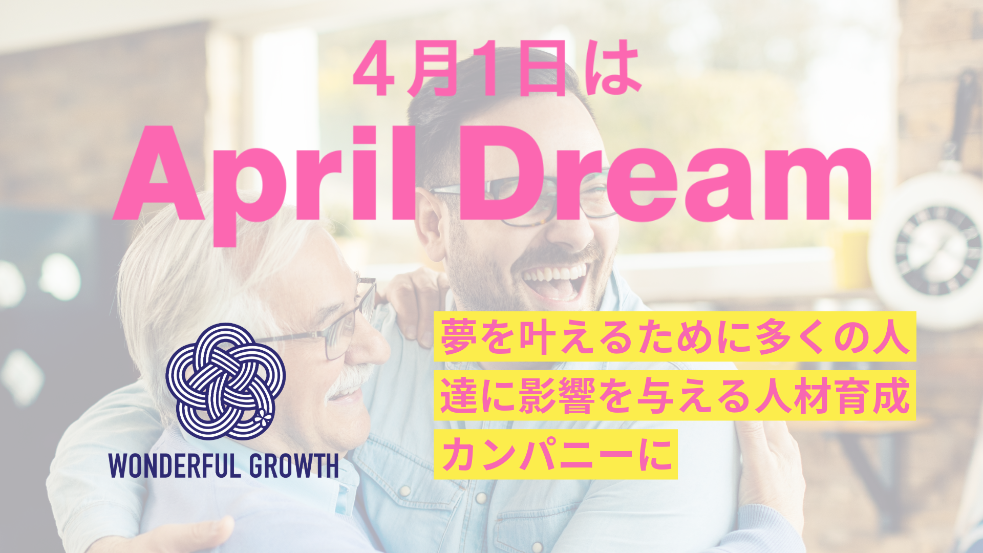 当社は、4月1日を夢を発信する日にしようとするApril Dreamに賛同しています。 このプレスリリースは「WONDERFUL GROWTH」の夢です。
