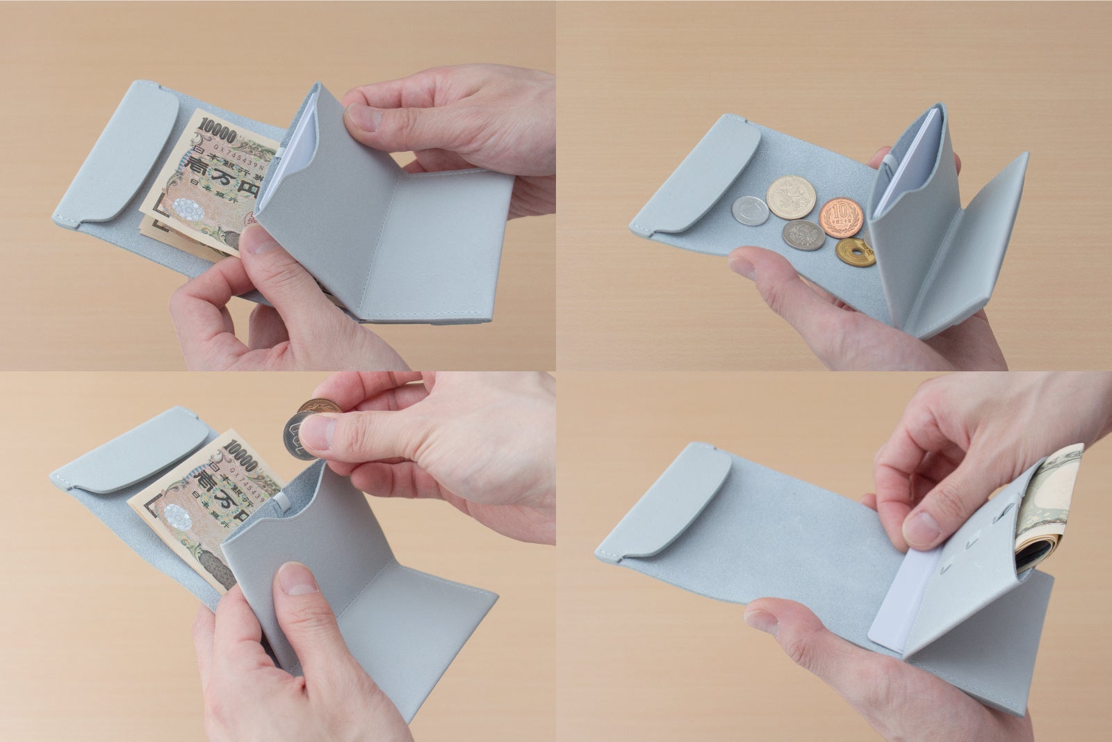 はやみちは、紙幣・カード・硬貨の配置を自由に調整でき、生活リズムや支払い方法に合わせて内部構成を最適化できる財布です。